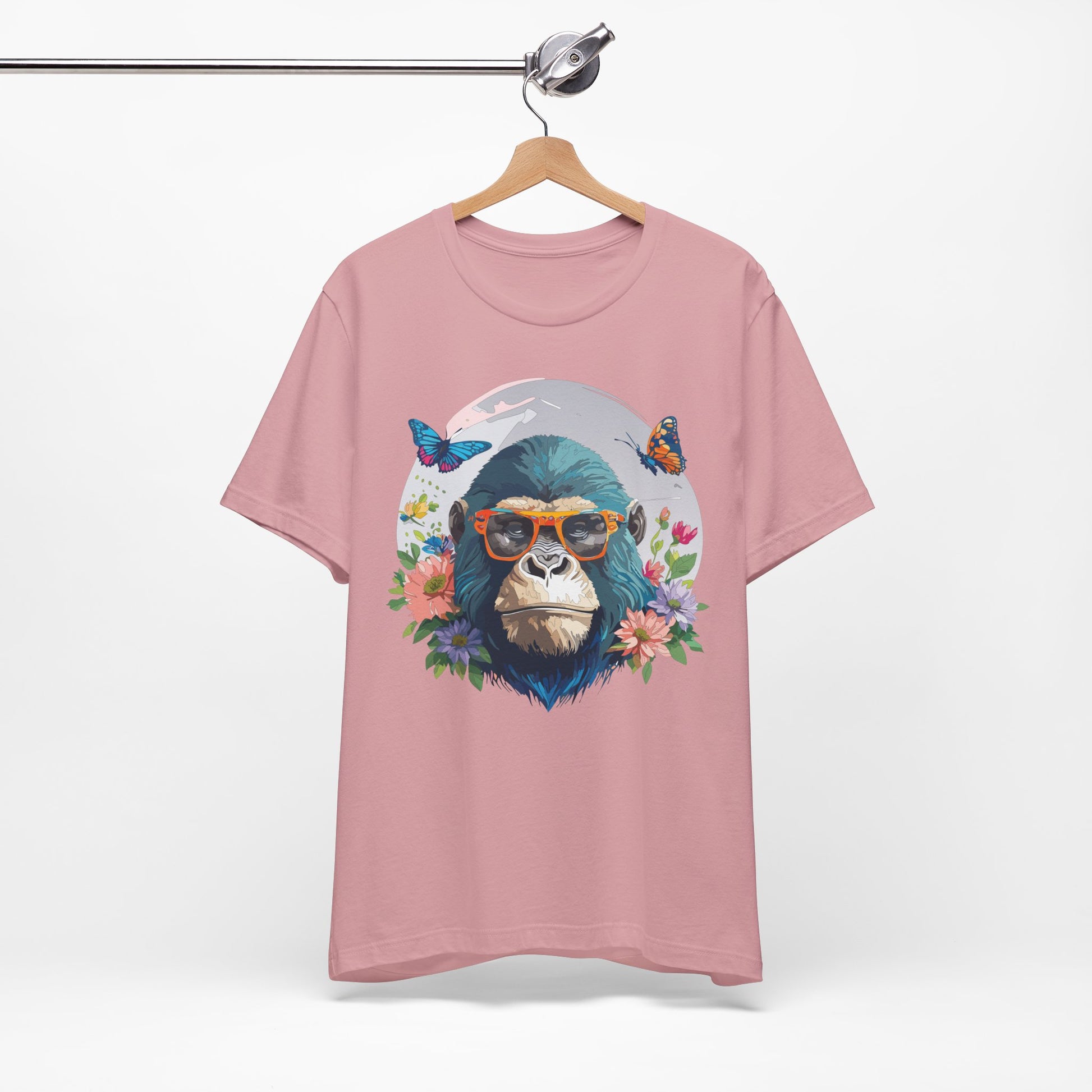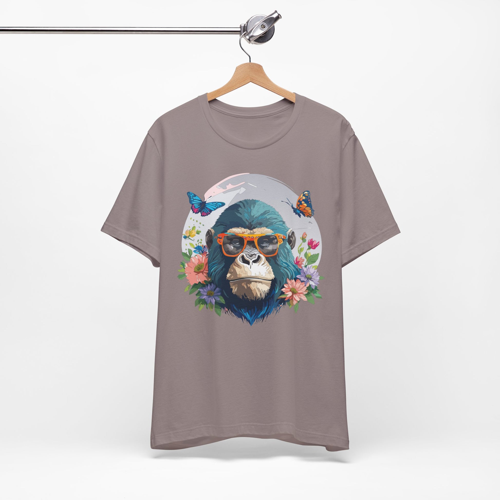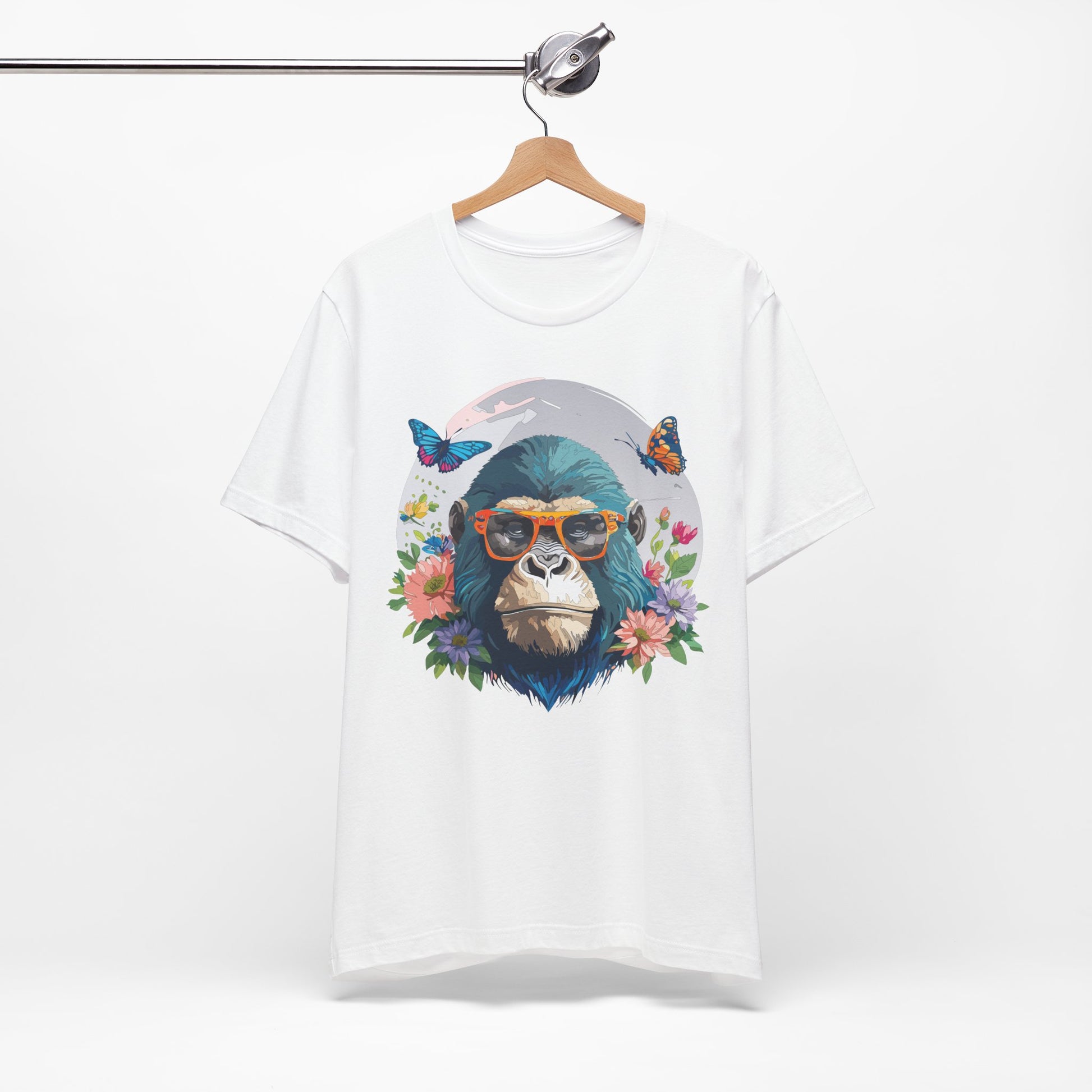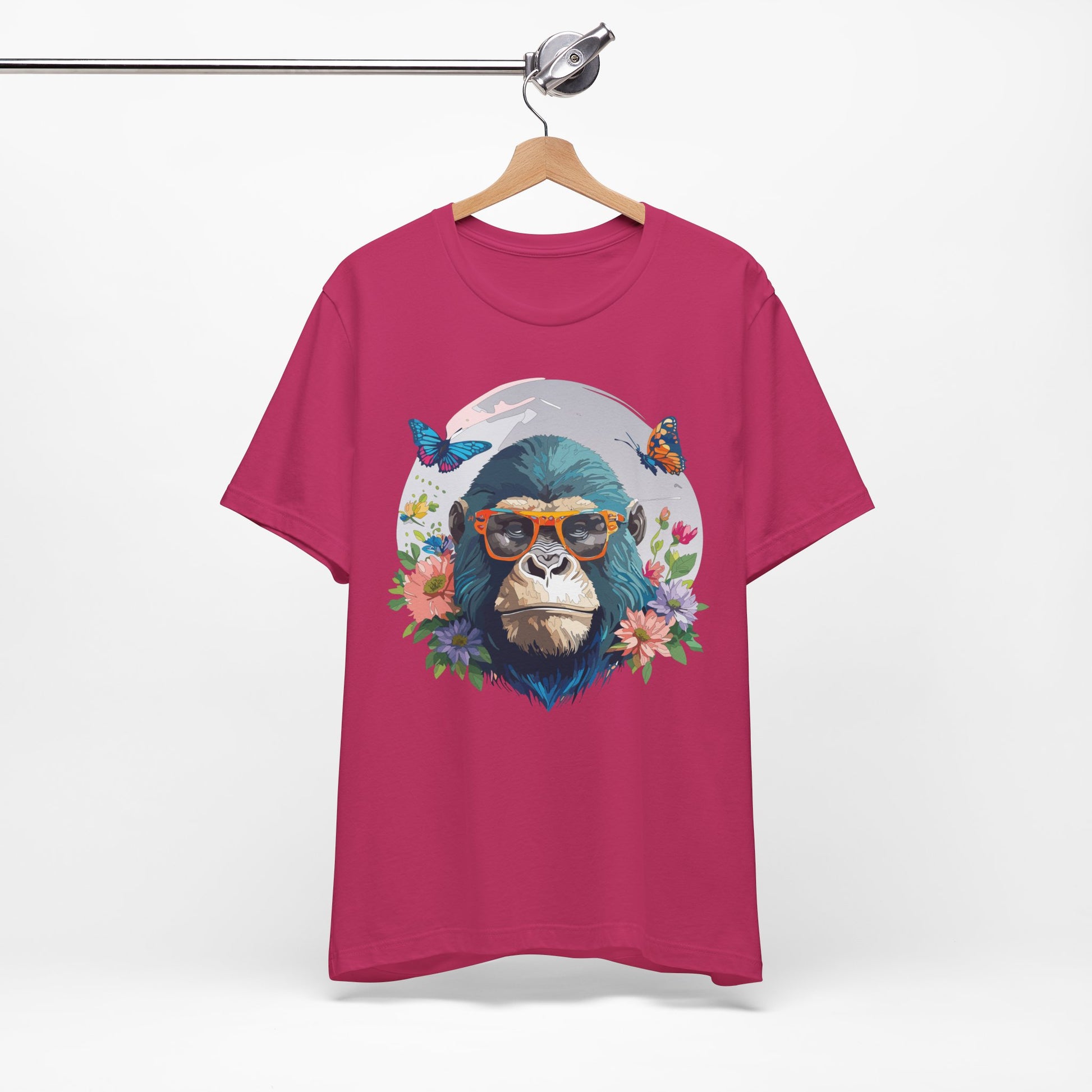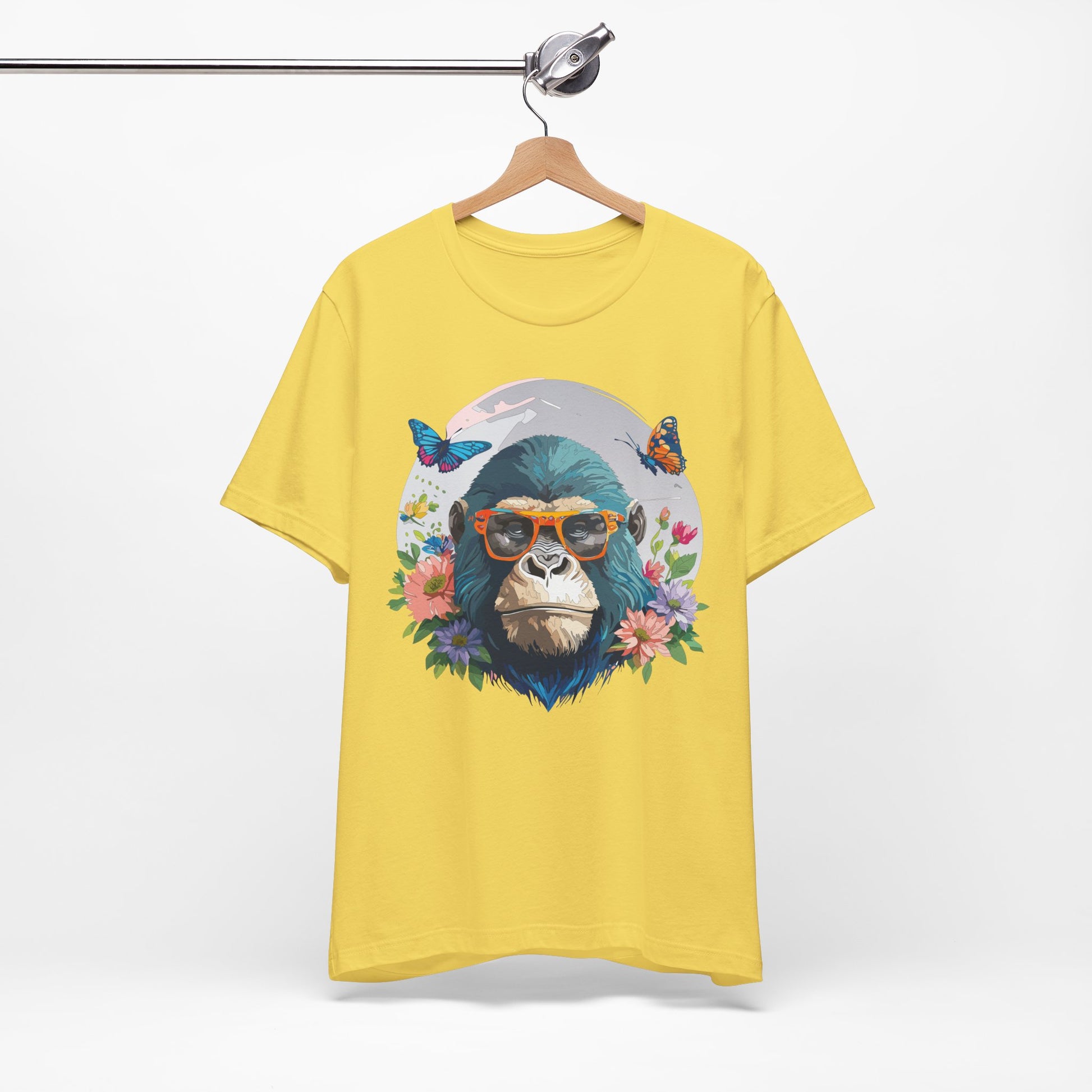 Animals Shirt, Shirt with Gorilla – Unisex Jersey Short Sleeve Tee, crafted for ultimate comfort and lasting style. Made from 100% Airlume combed and ring-spun cotton, this lightweight and breathable shirt is perfect for casual outings, weekend get-togethers, festivals, or just relaxing at home.