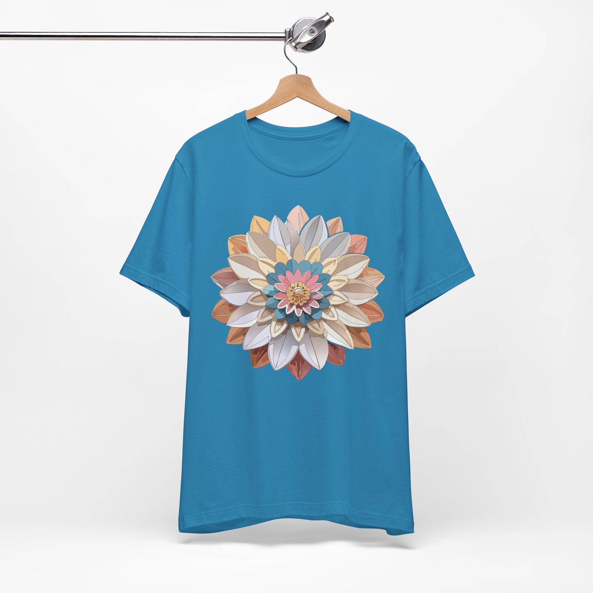 Floral Mandala Shirt, Flowers Mandala Shirt – Add a fresh and vibrant touch to your wardrobe with our Unisex Jersey Short Sleeve Tee, crafted for ultimate comfort and lasting style. Made from 100% Airlume combed and ring-spun cotton, this lightweight and breathable shirt is perfect for casual outings, weekend get-togethers, festivals, or just relaxing at home.